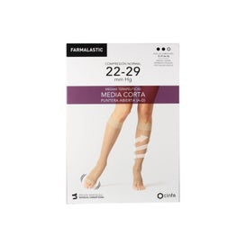 Bas Court à bout ouvert convenant aux personnes qui travaillent ou passent de nombreuses heures debout et comme alternative aux collants (femmes enceintes, en surpoids ou incontinence). Couleur camel, taille petite.