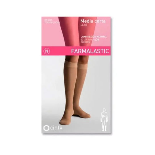 Farmalastic Bas De Contention Court (A-D) Compression Normale T-Reina Plus Beige sont des bas de compression adaptés aux personnes qui souffrent deproblèmes circulatoires, d'enflure ou de varices. Ils sont également utiles pour les personnes qui passent de longues périodes debout.Le Bas Court Farmalastic (A-D) à Compression Normale ne laisse pas de traces de caoutchouc sur le mollet et la pointe ne comprime pas les orteils.*Ce produit ne comprend qu'un seul bas. Le T-Reina Plus a un tour de mollet approximatif de 43-45 cm et un tour de cheville de 28-29 cm.*Pour des raisons d'hygiène, aucun retour ou échange ne sera accepté sur ce produit.