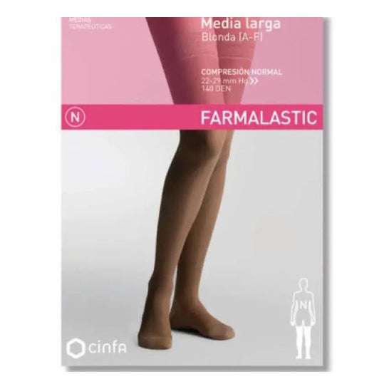 Farmalastic Bas Long Dentelle (A-F) Compression Normale Beige TS sont des bas de compression qui aident à stimuler la circulation. En outre, il ne laisse pas de trace de caoutchouc sur le mollet et ne comprime pas les orteils. Ils sont fermés par unlacet en silicone et sont beaucoup plus élégants que les Bas Courts.Particulièrement adapté aux personnes suivant un traitement pour des pathologies veineuses et aux femmes enceintes ayant une tendance aux œdèmes.
