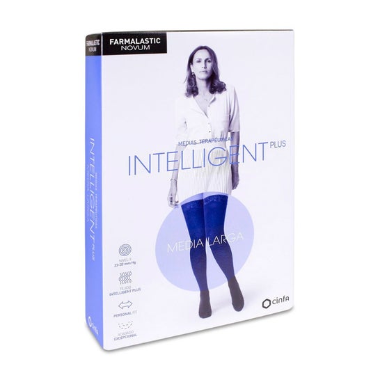 Farmalastic Novum Media Larga Intelligent Marino Taille 5 1 Paire sont des bas thérapeutiques de compression dégressive, conçus pour améliorer la circulation dans les jambes. Avec une compression de niveau II (23-32 mm Hg), ils sont efficaces dans le traitement de :