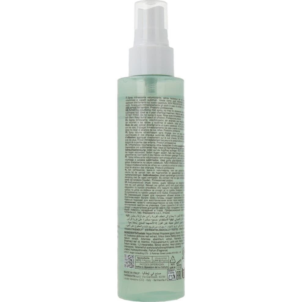 Farmavita Amethyste Scalp Hair Refreshing Volumizing Mist 150 ml est un spray sans rinçage conçu pour rééquilibrer et rafraîchir le cuir chevelu. Il apporte du volume immédiat aux racines, en particulier après des traitements chimiques tels que des colorations ou des décolorations.