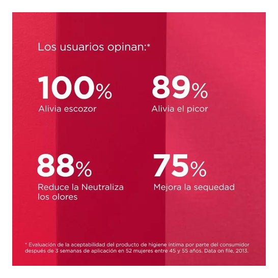 Gel qui aide à assainir la zone intime. Protège contre les agressions microbiologiques externes et les irritations causées par les vêtements serrés ou la transpiration. Hydrate la peau et prévient la sécheresse vaginale et vulvaire grâce à la bétaïne. Convient aux femmes, pour toutes les étapes de la vie d'une femme, particulièrement recommandé dans les périodes d'infection ou d'inflammation de la zone vulvaire ou vaginale et pendant le cycle menstruel ou après un rapport sexuel. Son pH est de 5,5, ce qui lui permet d'être utilisé quotidiennement. Sa composition lui confère des propriétés de neutralisation des odeurs grâce à la technologie Neutraq, et il contient de l'acide lactique qui garantit un nettoyage idéal et protège la zone vaginale. Format de 2 unités de 200ml.