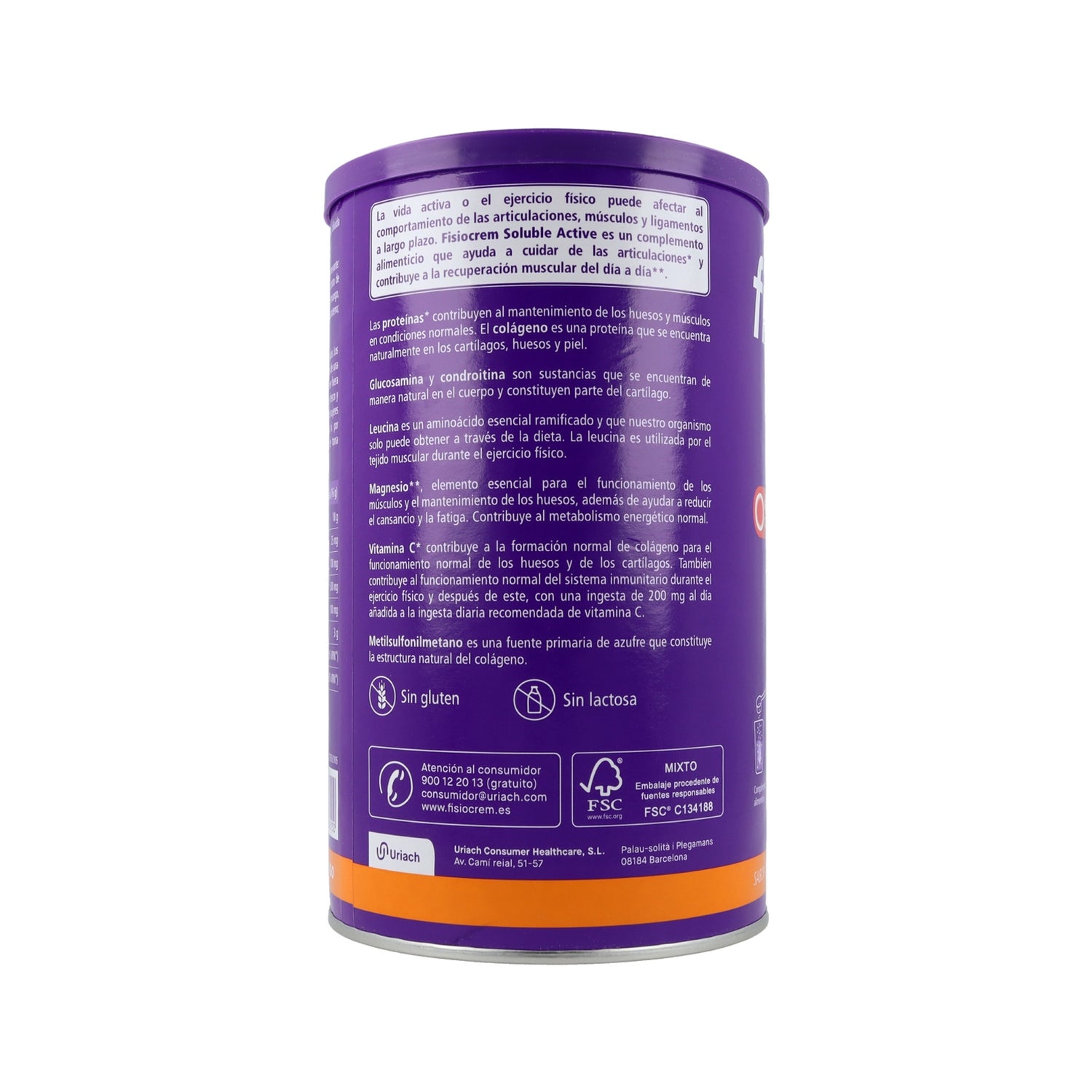 Fisiocrem Soluble Actif Articulations et Muscles 480g est un complément alimentaire destiné à favoriser la récupération musculaire avec un agréable goût d'orange et de mangue. Il contribue également à améliorer la structure du cartilage.