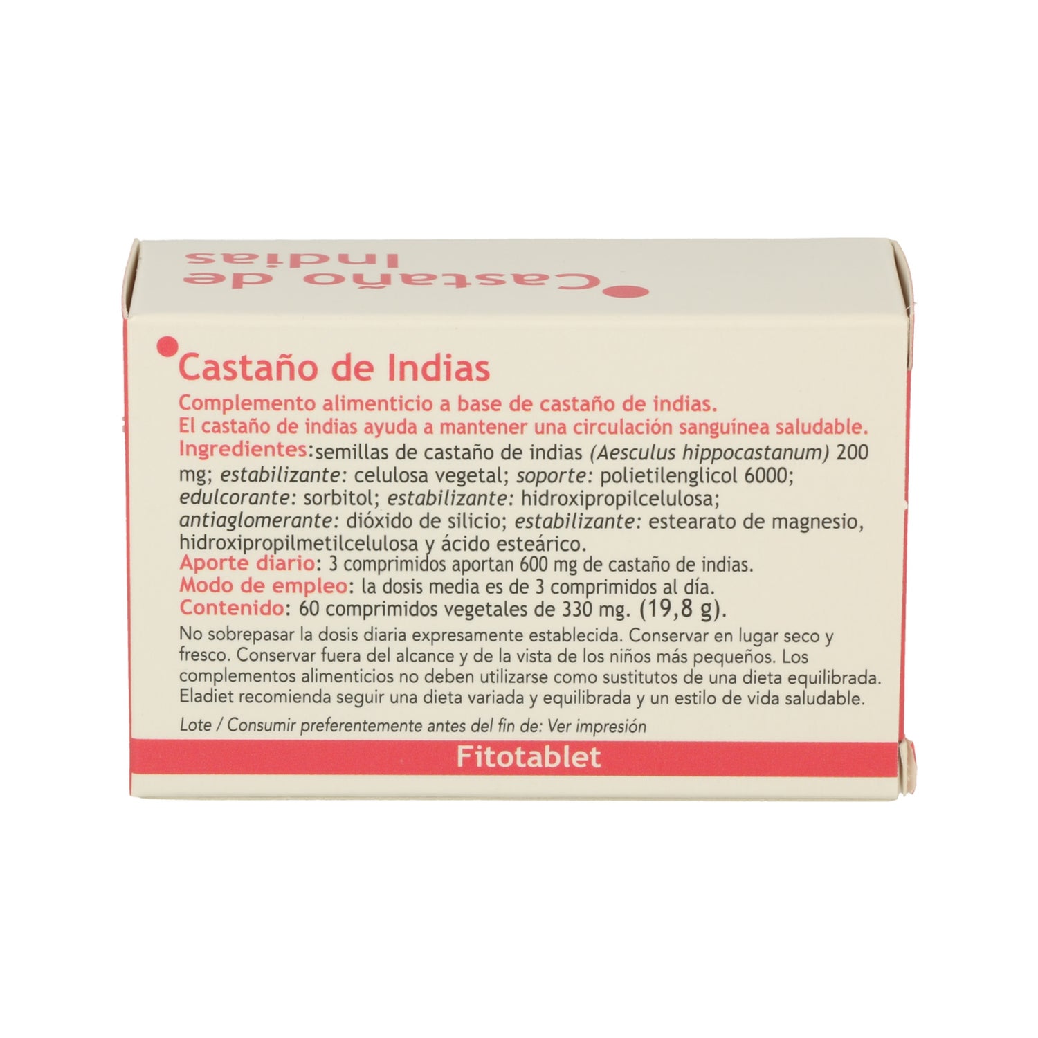 Pour 3 comprimés : 600 mg d'extrait de graines de marron d'Inde (Aesculus hippocastanum), excipients (cellulose microcristalline, stéarate de magnésium végétal, dioxyde de silicium), agent d'enrobage (hydroxypropylméthylcellulose).