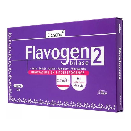 Phytoestrogènes biphasiques. Formule pour les processus ménopausiques. Composé de deux capsules, un jour et une le soir. Le premier, basé sur l'extrait de safran et de sauge, améliore les symptômes des suffocations et de faiblesse, associés au processus. Le second est composé de pavot californien et d'Ashwagandha. Calmez l'inflammation et améliorez l'irritabilité, favorisant le sommeil.