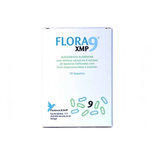 Flora 9 XMP 10x4g est un complément alimentaire qui combine 8 souches de bactéries avec un mélange de prébiotiques et d'enzyme amylase, utilisant une technologie de nouveau développement appelée ProbioAct.