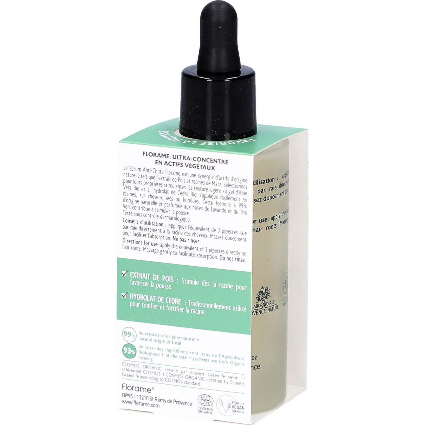 Florame Sérum Antichute 50 ml est un traitement conçu pour aider à réduire la perte de cheveux et stimuler leur croissance. Sa formule innovante combine extrait de pois et racines de maca, deux ingrédients végétaux connus pour leurs propriétés fortifiantes.