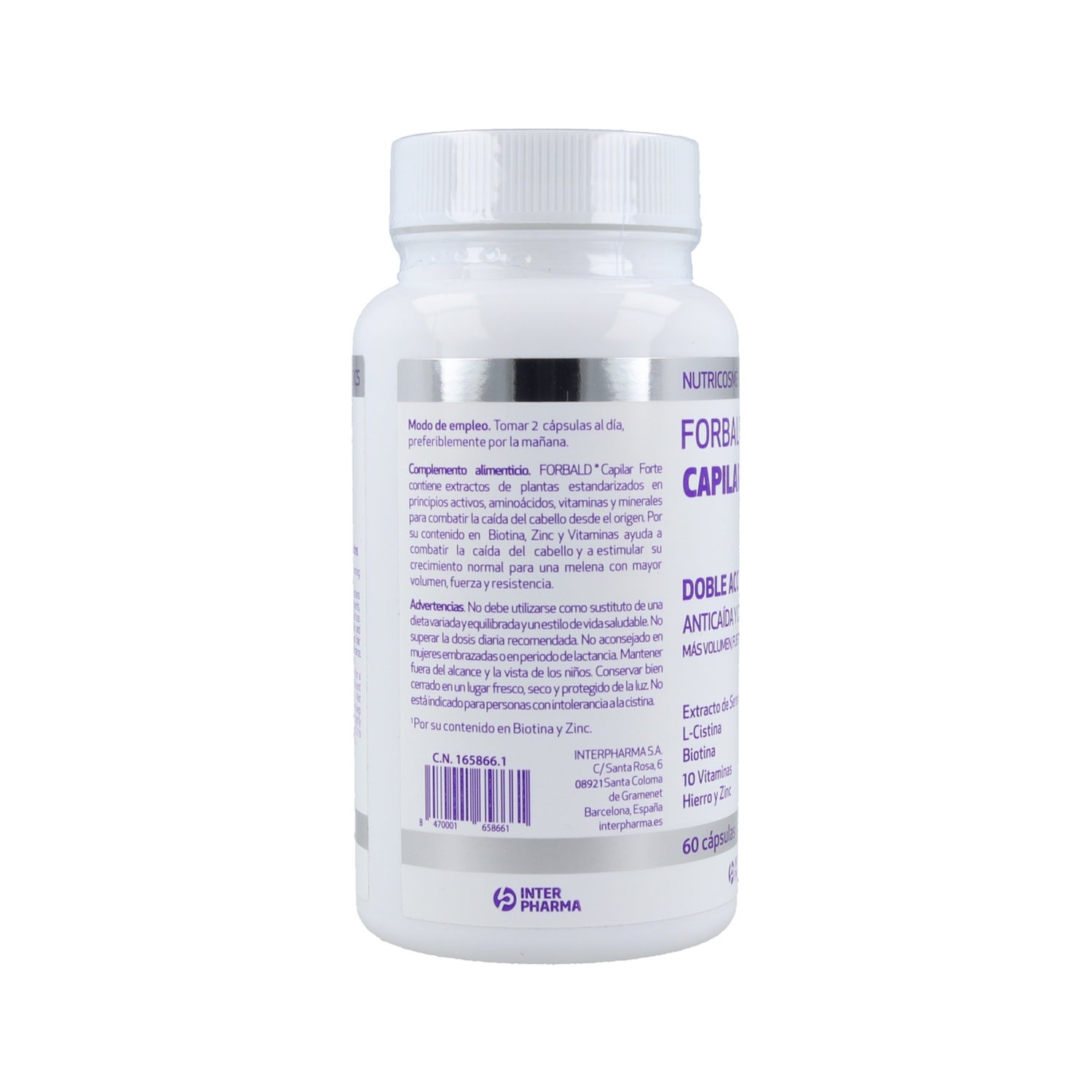 Forbald capillary Forte 60càps est un complément alimentaire qui aide à stopper la chute des cheveux, renforce les cheveux et favorise leur croissance, tant chez les hommes que chez les femmes. Il contient un grand apport de vitamines, de minéraux et d'extraits de plantes qui renforcent les cheveux de l'intérieur, en revitalisant et en augmentant le volume capillaire.