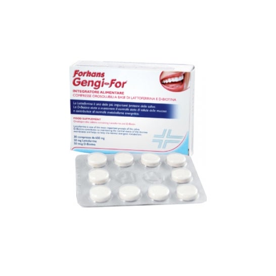 Forhans Gengifor est un complément conçu pour le soin intégral de la santé buccale, axé sur la protection et le renforcement des gencives. Sa formule innovante combine lactoferrine et D-biotine, fournissant une défense naturelle contre les agressions microbiennes, et aidant à prévenir :