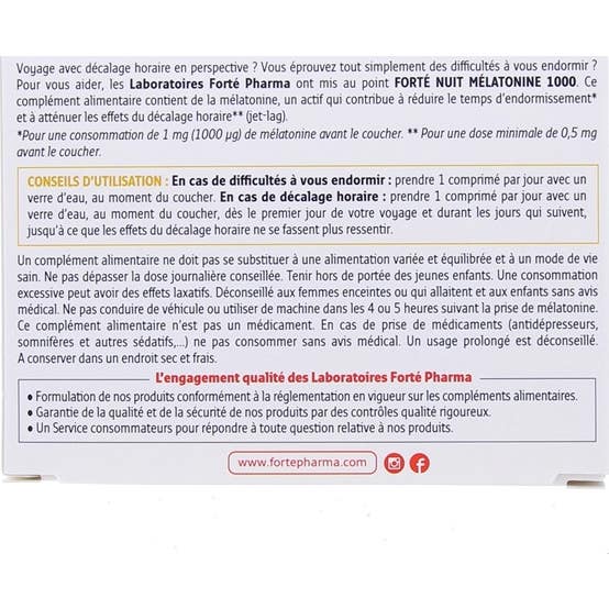 Difficultés à s'endormir(1)? Long voyage en perspective(2)? Mélatonine 1000 délivre une dose efficace de mélatonine en un seul comprimé. La mélatonine contribue à réduire le temps d'endormissement (1) et à atténuer les effets du décalage horaire(2) (jet-lag).