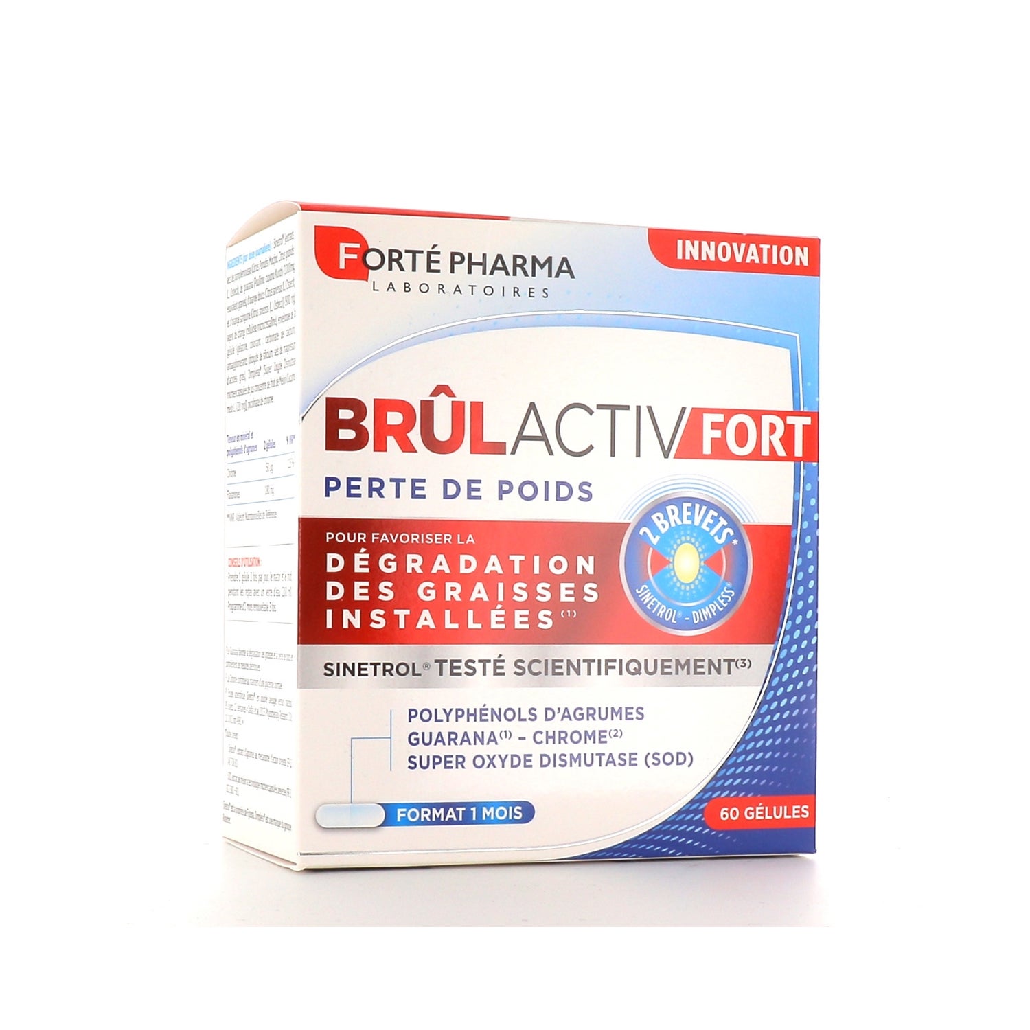 Forté Pharma BrûlActiv Fort Perte de Poids 60 Gélules est un complément alimentaire formulé à base de 2 ingrédients brevetés qui favorise la dégradation des graisses installées.