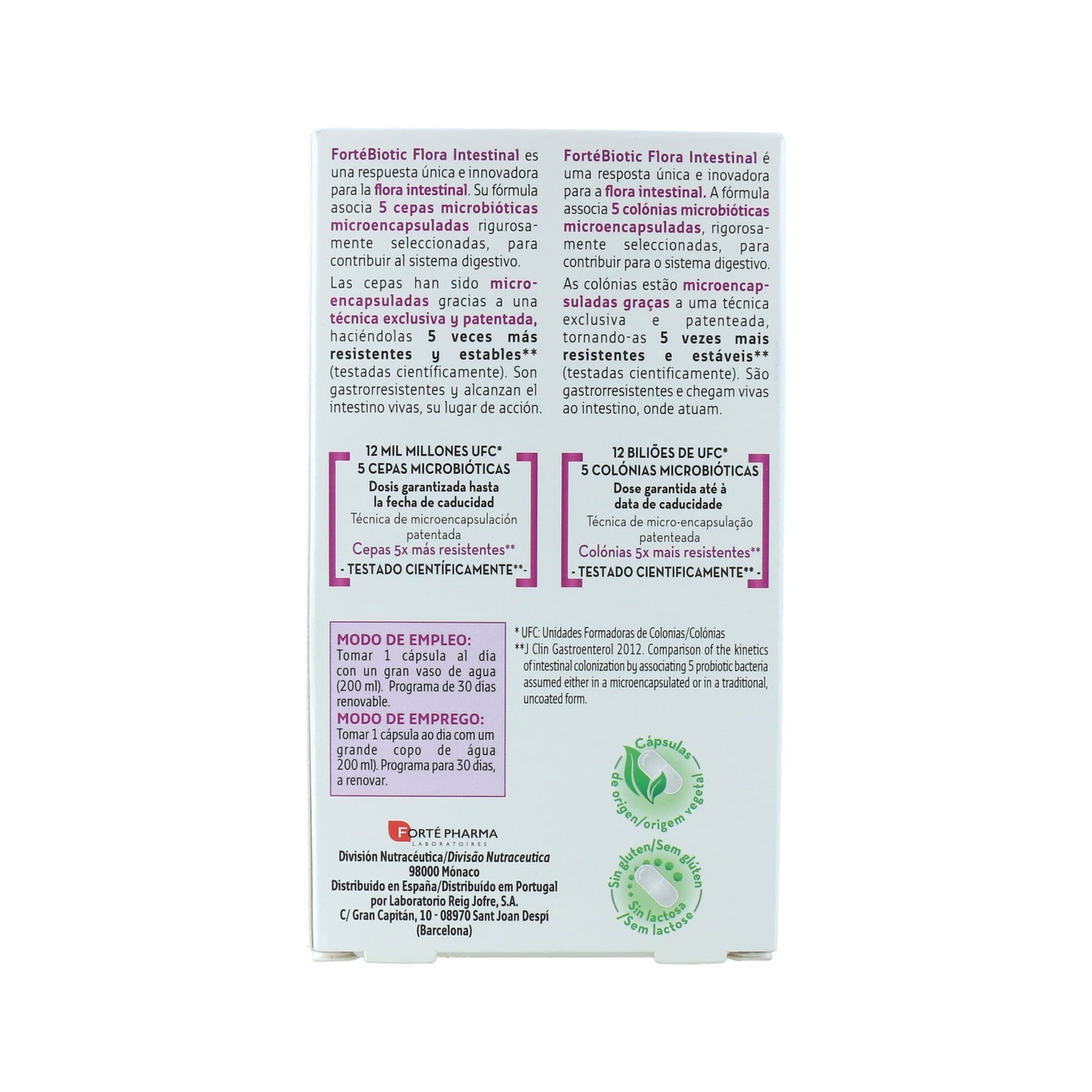 Sa formule combine 5 souches microbiotiques microencapsulées rigoureusement sélectionnées et fournit des micro-organismes vivants qui interagissent avec les cellules du système digestif.