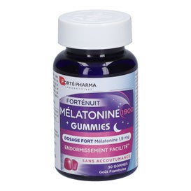 Forté Pharma Night Melatonin 1900 Flash Gummies 30 unités est un complément alimentaire à base de mélatonine qui apporte une dose de 1,9 mg. Il contribue à réduire le temps d'endormissement. Il peut également contribuer à réduire les effets du décalage horaire.