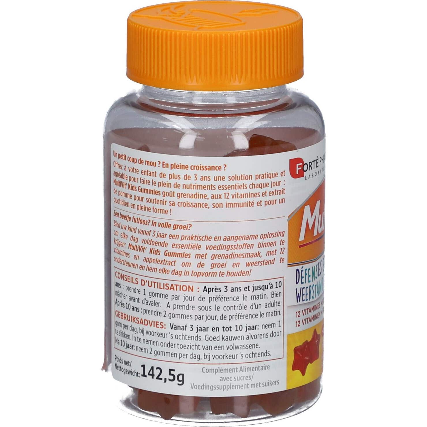 Forté Pharma MultiVit' Kids Défenses & Croissance 60 Gummies est un complément alimentaire conçu pour soutenir le développement et le bien-être des enfants. Ce produit se présente sous forme de gommes avec un délicieux goût de grenade, ce qui en fait une option attrayante pour les plus petits.