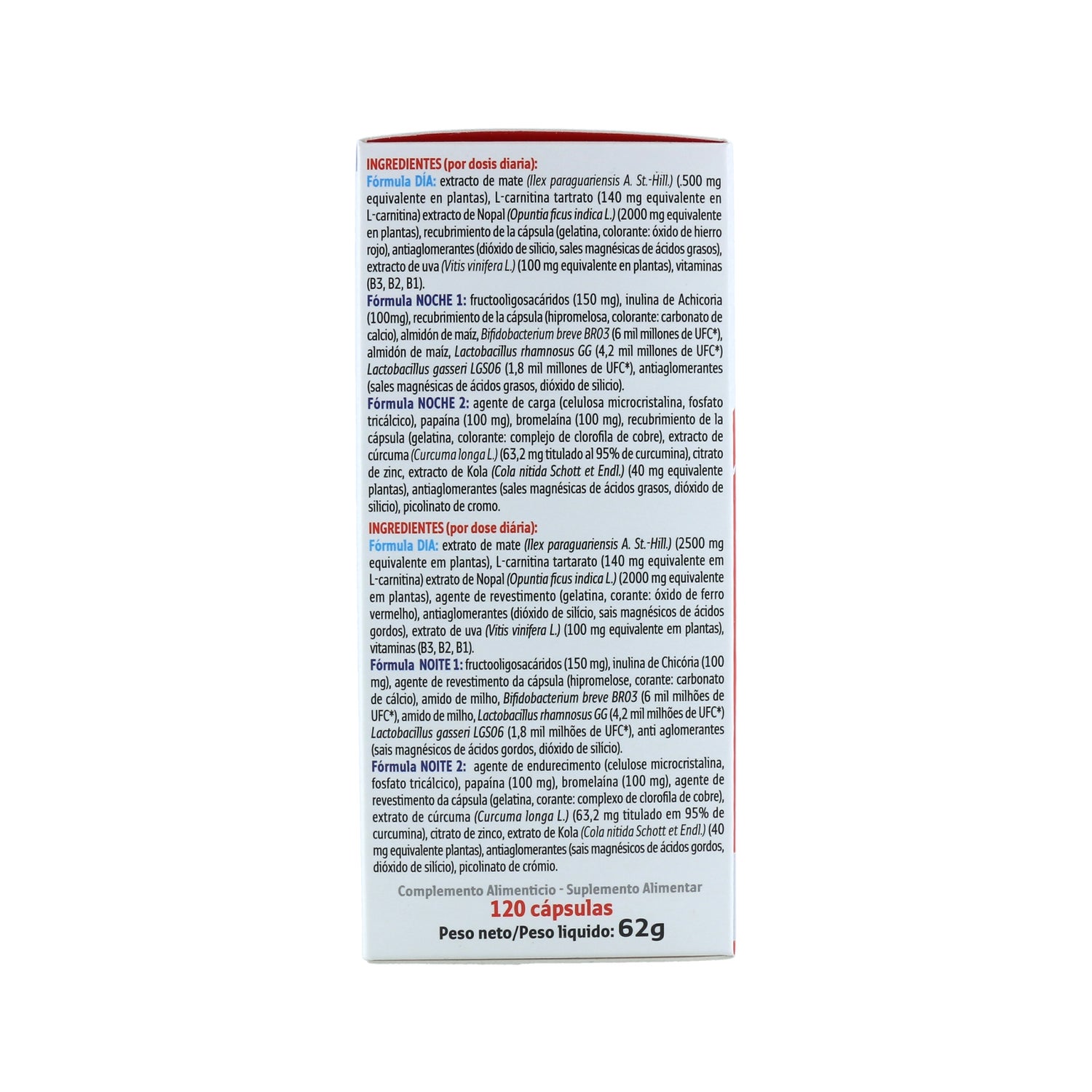 La formule de jour contient du maté, du nopal, de l'extrait de raisin et des vitamines qui contribuent à réguler l'appétit.