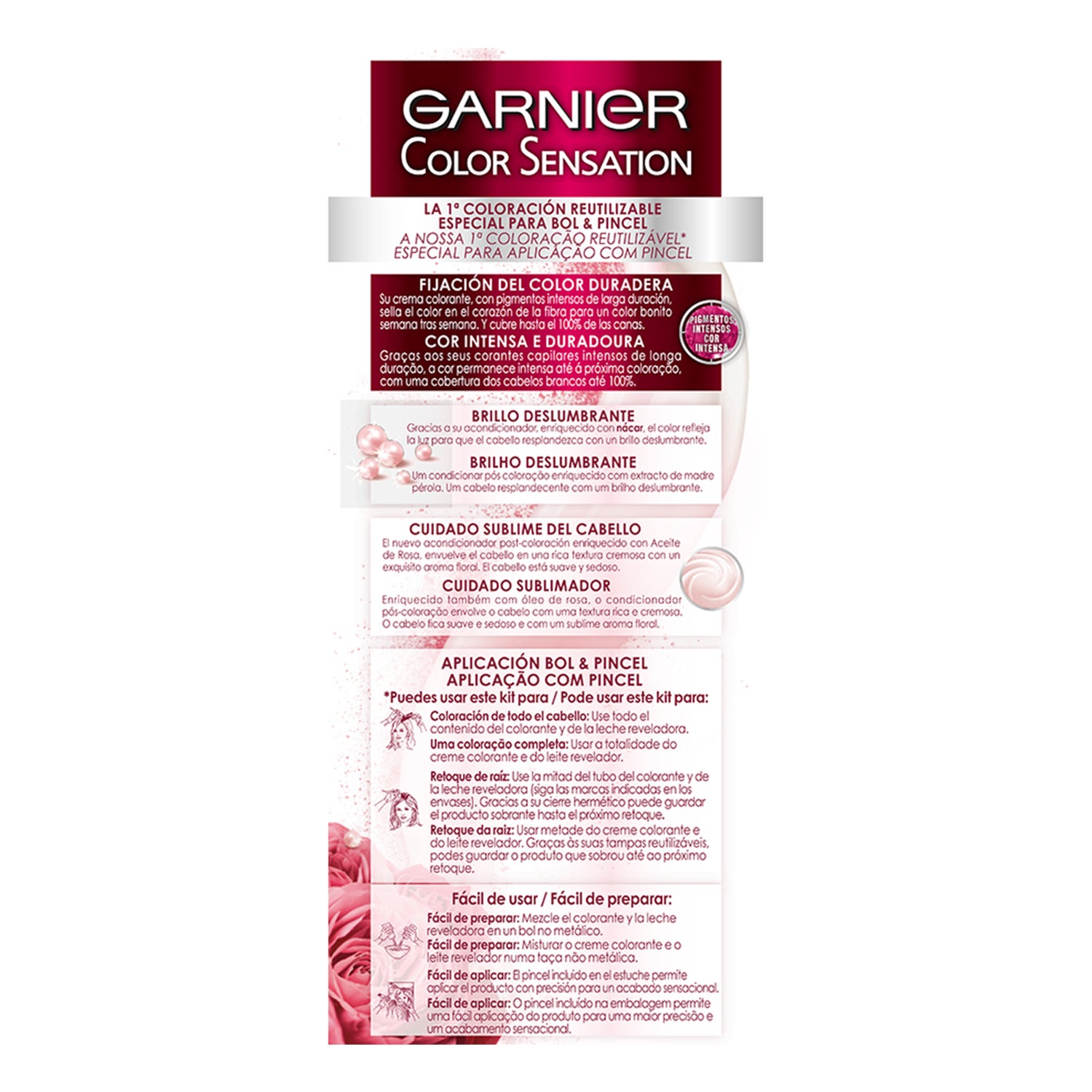 Garnier Color Sensation N°5.15 Espresso 4uds est une coloration permanente qui offre une finition intense et brillante pour les cheveux. Sa formule est conçue pour fournir une teinte espresso profonde et lumineuse, idéale pour couvrir les cheveux gris et revitaliser la couleur naturelle.