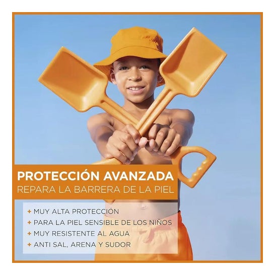 Crème solaire en spray formulée avec la technologie Netlock et des filtres SPF50 à très large spectre. Il aide à protéger la peau des enfants des effets nocifs des rayons UVA et UVB, tout en créant une fine barrière contre les agents extérieurs tels que le sable, l'eau et le chlore. Sa texture est non grasse et non collante et a été testée sous contrôle pédiatrique. Convient aux peaux claires, sensibles ou intolérantes au soleil.