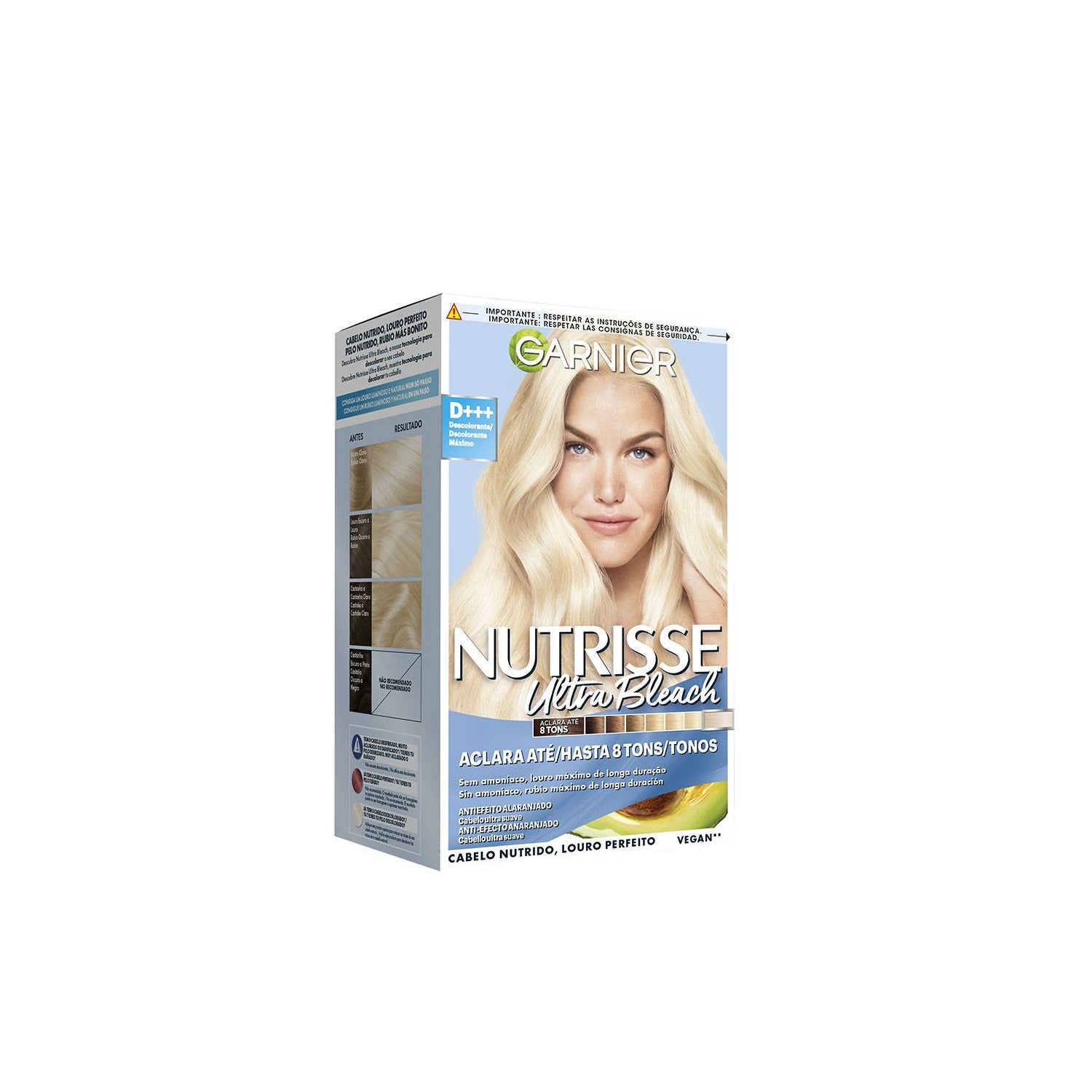 Garnier Kit Nutrisse Ultra Bleach D+++ Décolorant Maximum est un produit conçu pour obtenir une décoloration intense. Ce kit comprend une formule qui ne se concentre pas seulement sur l'éclaircissement des cheveux, mais qui offre également une nutrition profonde grâce à son enrichissement avec cinq huiles dans le traitement réparateur.