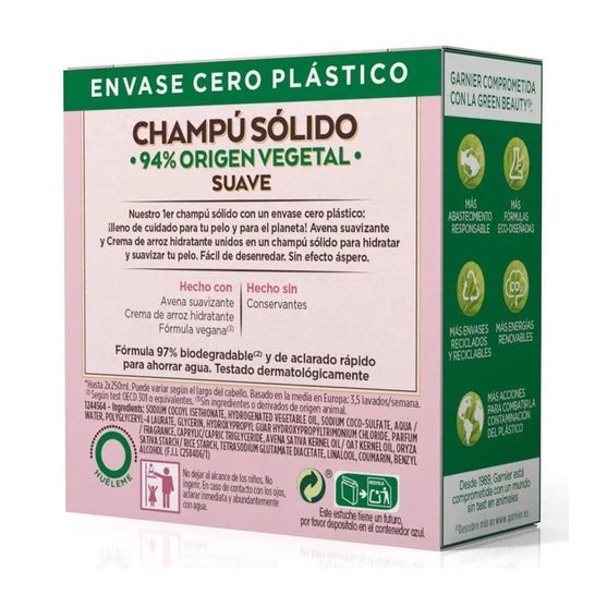 Shampoing solide indiqué pour l'hygiène et la protection de la fibre capillaire, formulé avec crème de riz et lait d'avoine. Contribue à protéger et renforcer les cheveux, tout en aidant à nettoyer en profondeur avec une texture douce et mousseuse.