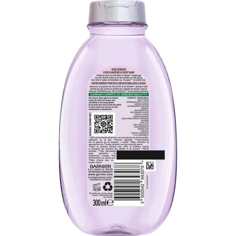 Garnier Original Remedies Shampoo Eau de Riz 300 ml est une solution axée sur le soin des cheveux. Sa formule, enrichie en infusion de eau de riz, est conçue pour remplir et lisser la fibre capillaire, offrant une chevelure douce et brillante.