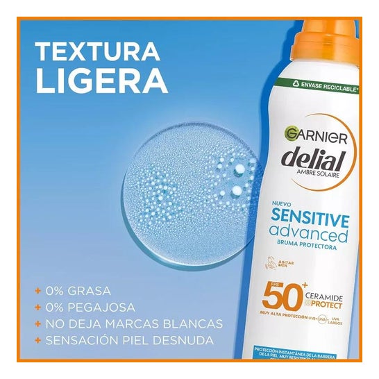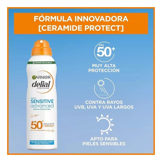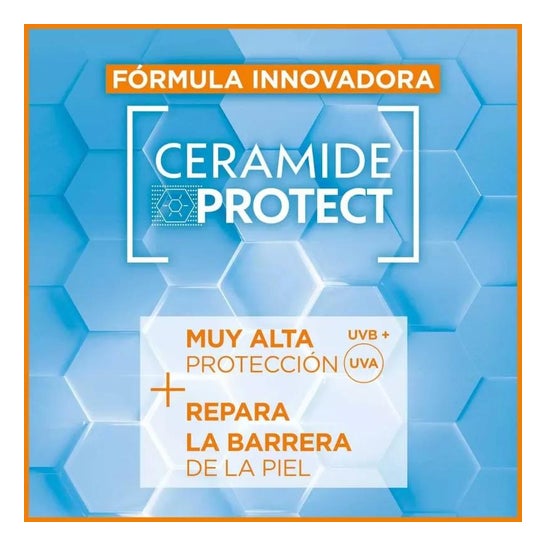 Brume solaire formulée avec la technologie Ceramide Protect et des filtres SPF50 à très large spectre. Elle aide à protéger la peau des effets nocifs des rayons UVA et UVB, tout en créant une fine barrière contre les agents extérieurs tels que le sable, l'eau et le chlore. Sa texture est non grasse et non collante et a été testée sous contrôle dermatologique. Convient aux peaux claires, sensibles ou intolérantes au soleil.