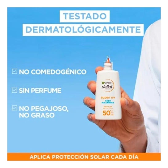 Garnier Sensitive Advanced Super UV Fluid Fps50+ 40ml est une crème solaire pour le visage et les yeux avec un indice de protection SPF 50+. Sa texture fluide pénètre rapidement et procure une hydratation durable grâce à l'acide hyaluronique. Idéale pour prévenir et traiter les taches solaires et la pollution cutanée. Il est recommandé d'éviter l'exposition au soleil aux heures centrales de la journée.