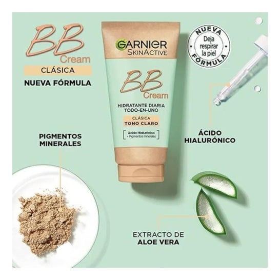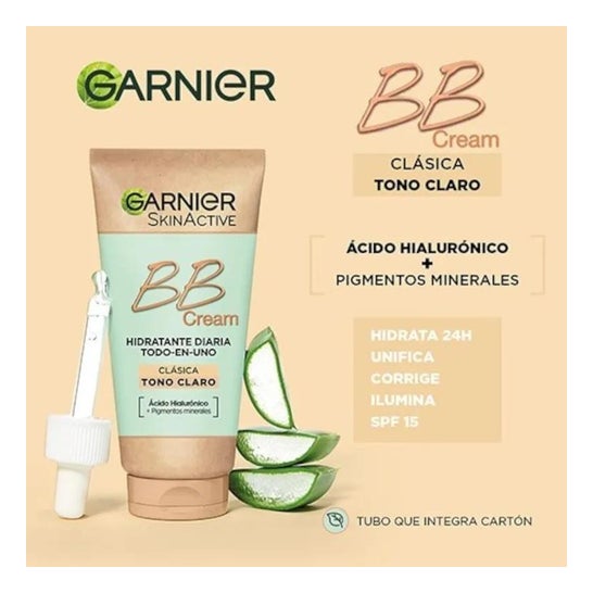 Garnier Bb Cream Classico Light Tone 50ml est une crème BB Garnier Skin Active pour les peaux normales de couleur claire, qui offre une couverture légère pour réduire les imperfections et unifier le teint. Sa formule hydrate la peau pendant 24 heures et grâce à la vitamine C aux propriétés antioxydantes, elle revitalise l'éclat et la luminosité de la peau.
