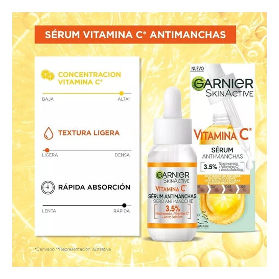 Sérum concentré pour le visage, enrichi en vitamine C, acide salicylique et niacinamide. Aide à révéler un teint lumineux et à réduire visiblement les taches brunes causées par le soleil, l'acné ou le vieillissement. La formule nourrissante est sans cruauté. Convient à tous les types de peau.