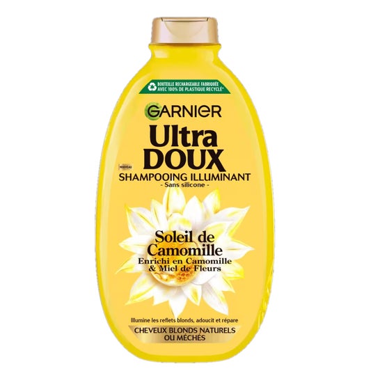 Shampoo Garnier Ultra Doux Camomille 600ml est un produit spécialement conçu pour renforcer la luminosité de tes cheveux blonds.