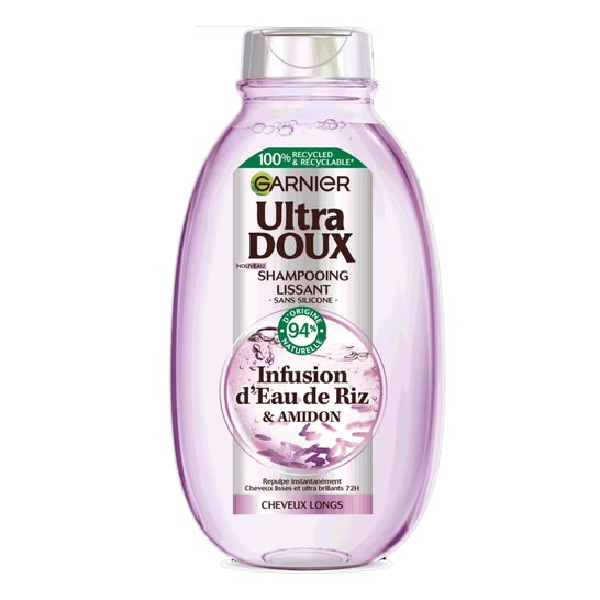 Garnier Ultra Doux Infusion d'Eau de Riz Shampoo 400ml est un produit conçu pour le soin des cheveux. Ce shampooing est spécialement formulé pour les cheveux longs et sans éclat.