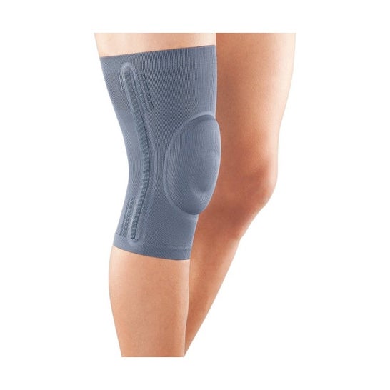 Rotule rotulienne viscoélastique avec renfort pour la protection du tibia et le soulagement du tendon rotulien. Il permet un contrôle adéquat de la trajectoire de la rotule et ses points de relief appliquent un effet de micro-massage qui favorise la résorption des œdèmes et des hématomes lors du mouvement du genou. Stabilisateurs en spirale pour un meilleur contrôle médio-latéral et pour empêcher l'orthèse de s'enrouler. Des points en silicone à l'intérieur de l'orthèse empêchent la migration pendant l'activité.