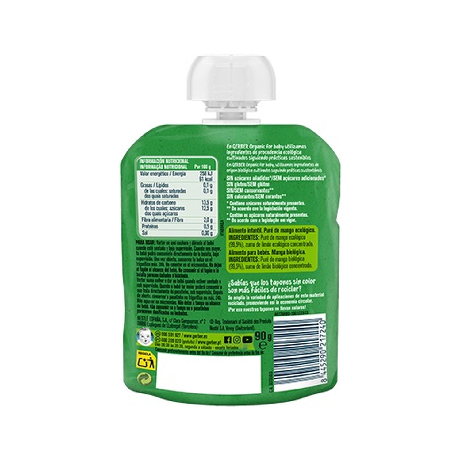 Purée de fruits 100% biologique destinée aux bébés en âge de consommer des crèmes. Elle est présentée dans un sachet pratique avec un couvercle hermétique. Elle constitue une source naturelle de vitamines et de minéraux, qui contribuent au bon développement des nourrissons. Contient 95% de pulpe de mangue et du jus de citron biologique concentré. Recommandé en dessert ou en collation. Sans sucres ajoutés, sans conservateurs, sans colorants et sans huile de palme.