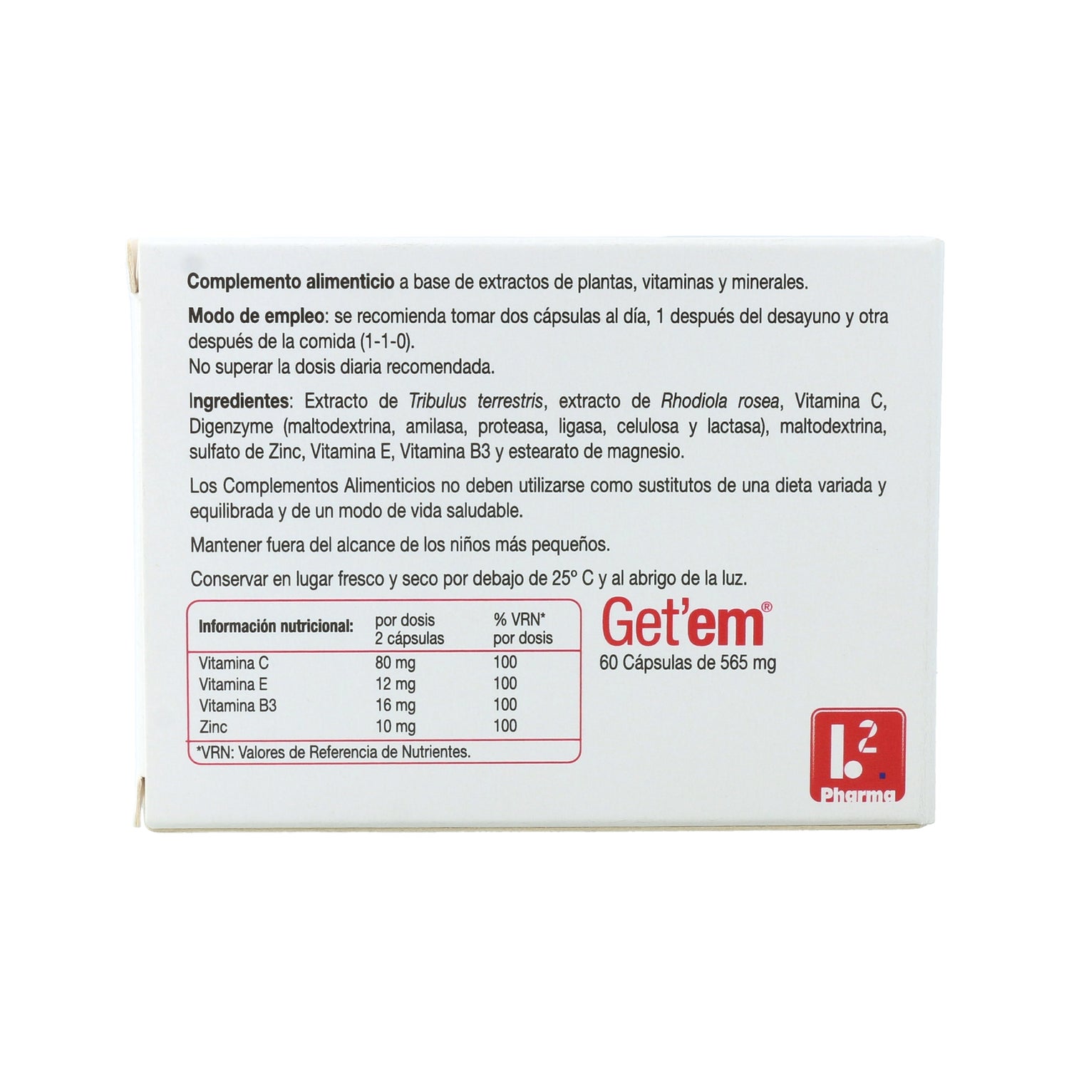 Get'em® est uncomplémentalimentaire qui apaiseles symptômes de la ménopause et de la post-ménopause, ainsi que de l'andropeine, tels que les bouffées de chaleur, les sautes d'humeur et la fatigue physique. En outre, Get'em® vous aidera à surmonter le manque de désir sexuel dans le couple. Chez l'homme, il aide à lutter contre le manque de désir sexuel, l'impuissance et lavitalité et la mobilitédu sperme. Sa formule est basée sur des extraits de plantes, de la L-arginine, des vitamines et des minéraux.