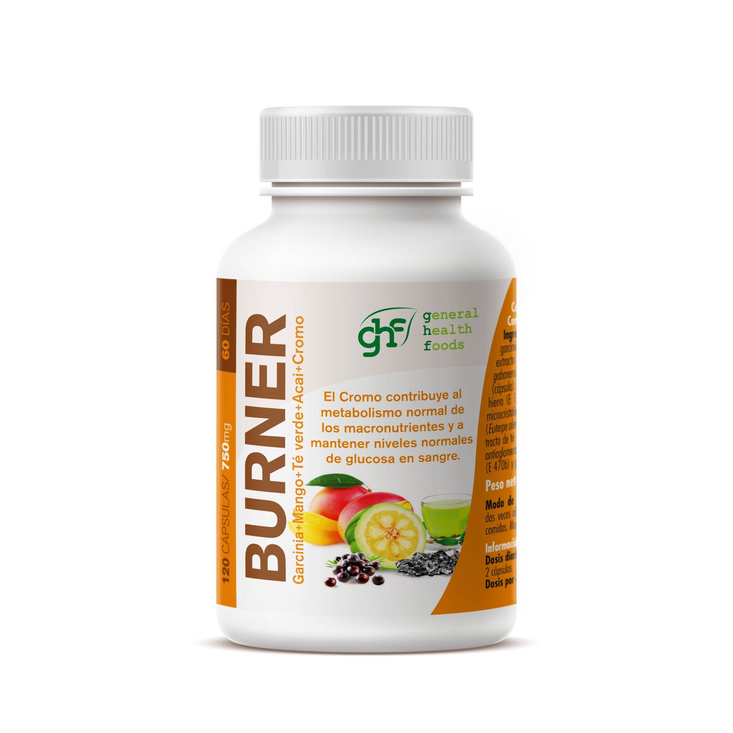 Cétone de framboise (200mg), extrait de mangue africaine Irvingia Gabonensis 10:1 (135mg), extrait de thé vert 50% polyphénols (45mg), açai (30mg), L-carnitine (90mg), picolinate de chrome (20mcg-50% Cdr). Capsule de gélatine.