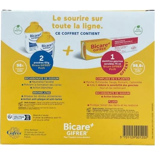 Gifrer Bicare + Double Act est un produit conçu pour améliorer l'hygiène bucco-dentaire. Cet ensemble comprend :