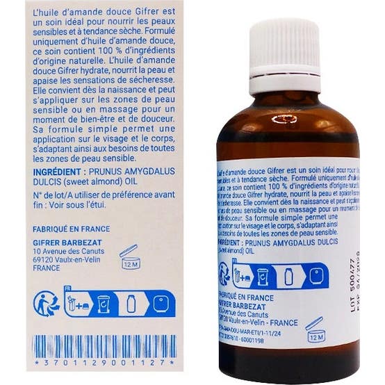 Gifrer Huile d'Amandes Douces 60 ml est un produit idéal pour ceux qui souhaitent prendre soin de leur peau de manière douce et efficace. Cette huile végétale est spécialement conçue pour répondre aux besoins des peaux sèches ou irritées. Elle s'avère également être un précieux allié pendant la grossesse, aidant à prévenir les vergetures.
