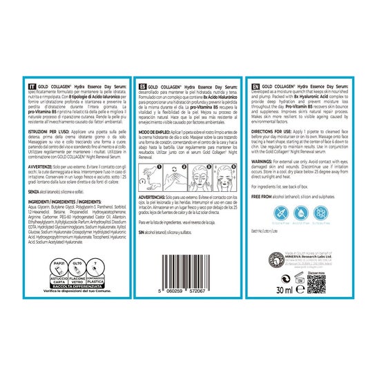 Sérum concentré pour le visage, formulé avec de l'acide hyaluronique et de la provitamine B5. Il aide à hydrater et à retenir l'humidité tout en protégeant le visage contre les dommages causés par les radicaux libres et d'autres agressions environnementales. Il améliore également la texture de la peau et aide à réduire l'apparence des rides et ridules. Convient à tous les types de peau.