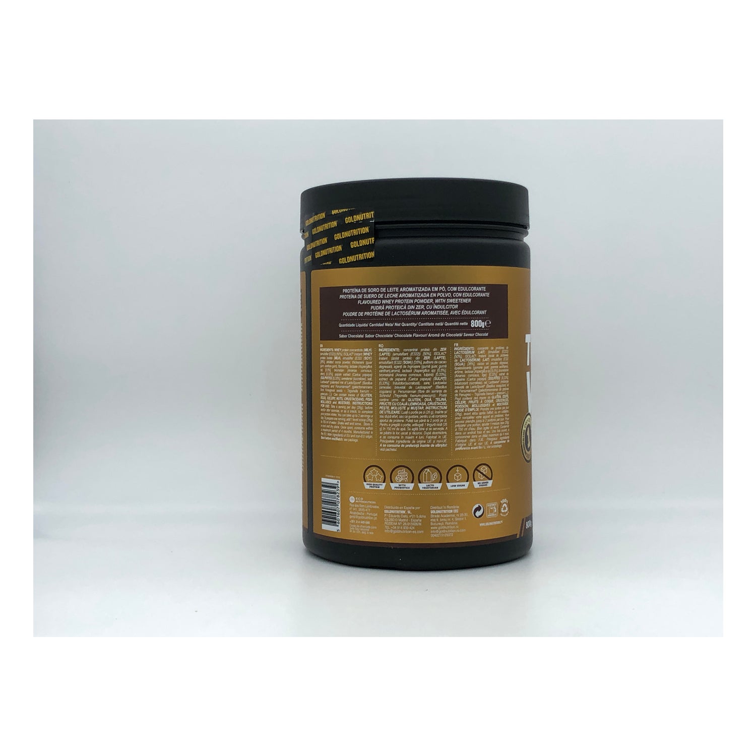 Gold Nutrition Total Whey Chocolate 800g est un complément alimentaire à base de protéines de lactosérum concentrées et isolées.