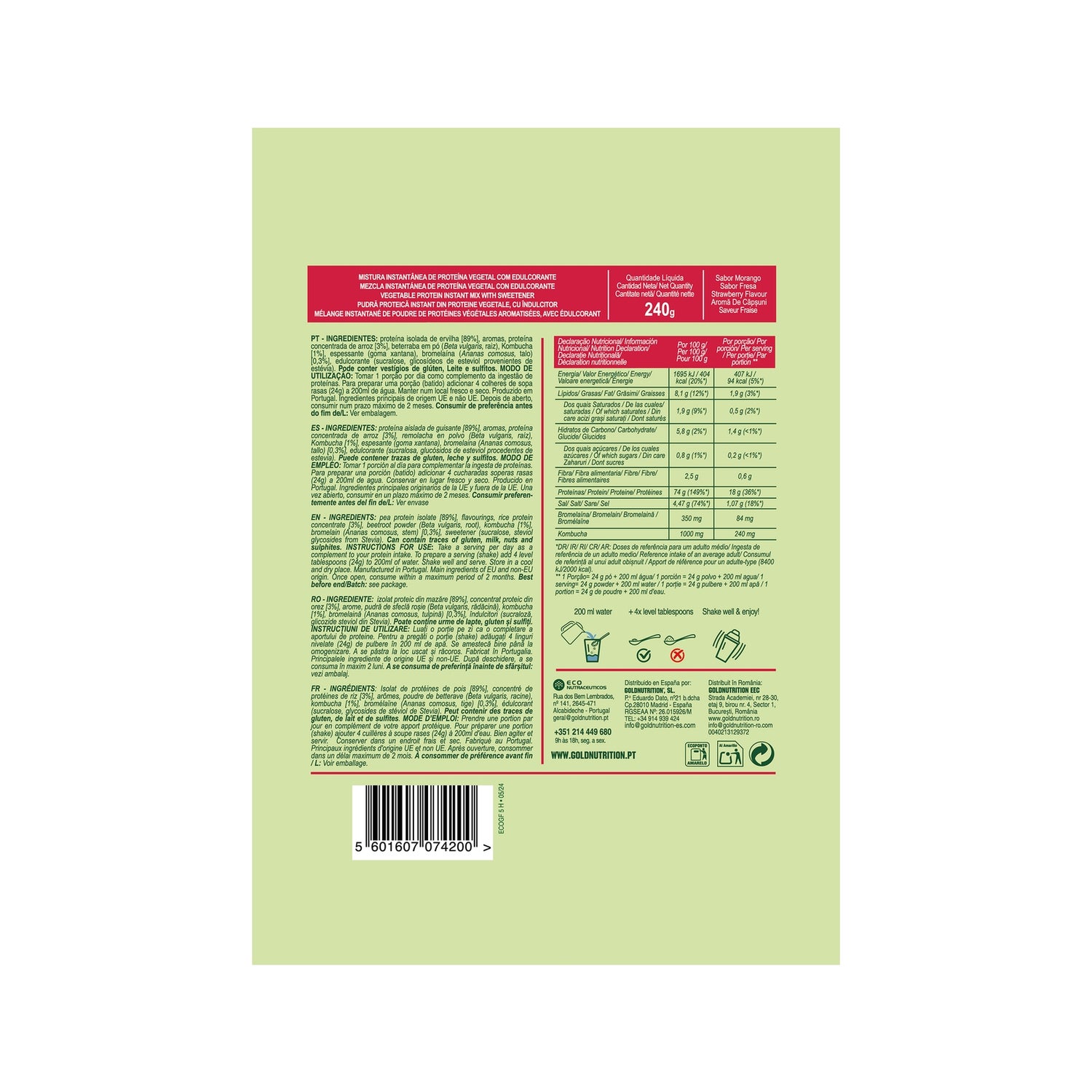 Gold Nutrition V-Protein Fraise 720g est une préparation à base de protéines végétales qui agit comme un adjuvant dans les processus de perte de poids.