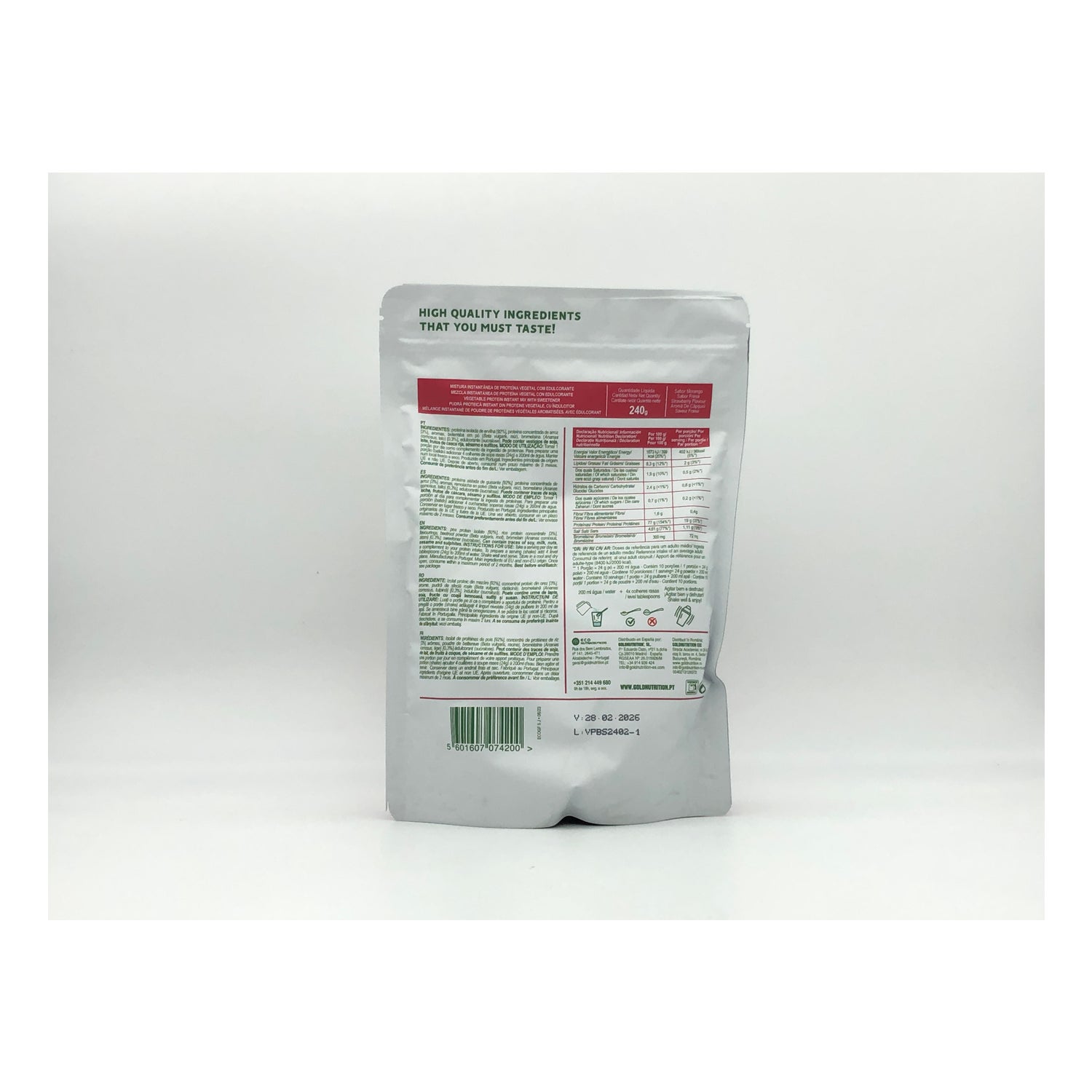 Protéine végétalienne au goût de framboise dont la composition contient tous les acides aminés essentiels à l'organisme, sans sucres. Il a une faible teneur en graisses saturées et fournit 83 % de protéines végétales. Composé d'un mélange breveté de légumes, de fruits et de plantes, appelé Spectra, riche en antioxydants et en nutriments. Convient aux personnes intolérantes au lactose ou à d'autres constituants des protéines animales. Avec des ingrédients issus de l'agriculture biologique.