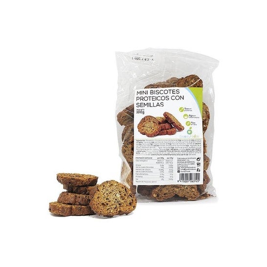 GoodyFoods Mini Protein Biscotti with Seeds 100g sont des mini-biscotti avec des graines à la texture croquante et à la saveur grillée. Ils sont riches en protéines et en fibres. Ils sont également pauvres en glucides et conviennent comme en-cas ou pour la création de canapés. Sans sucre. Contient 100g.