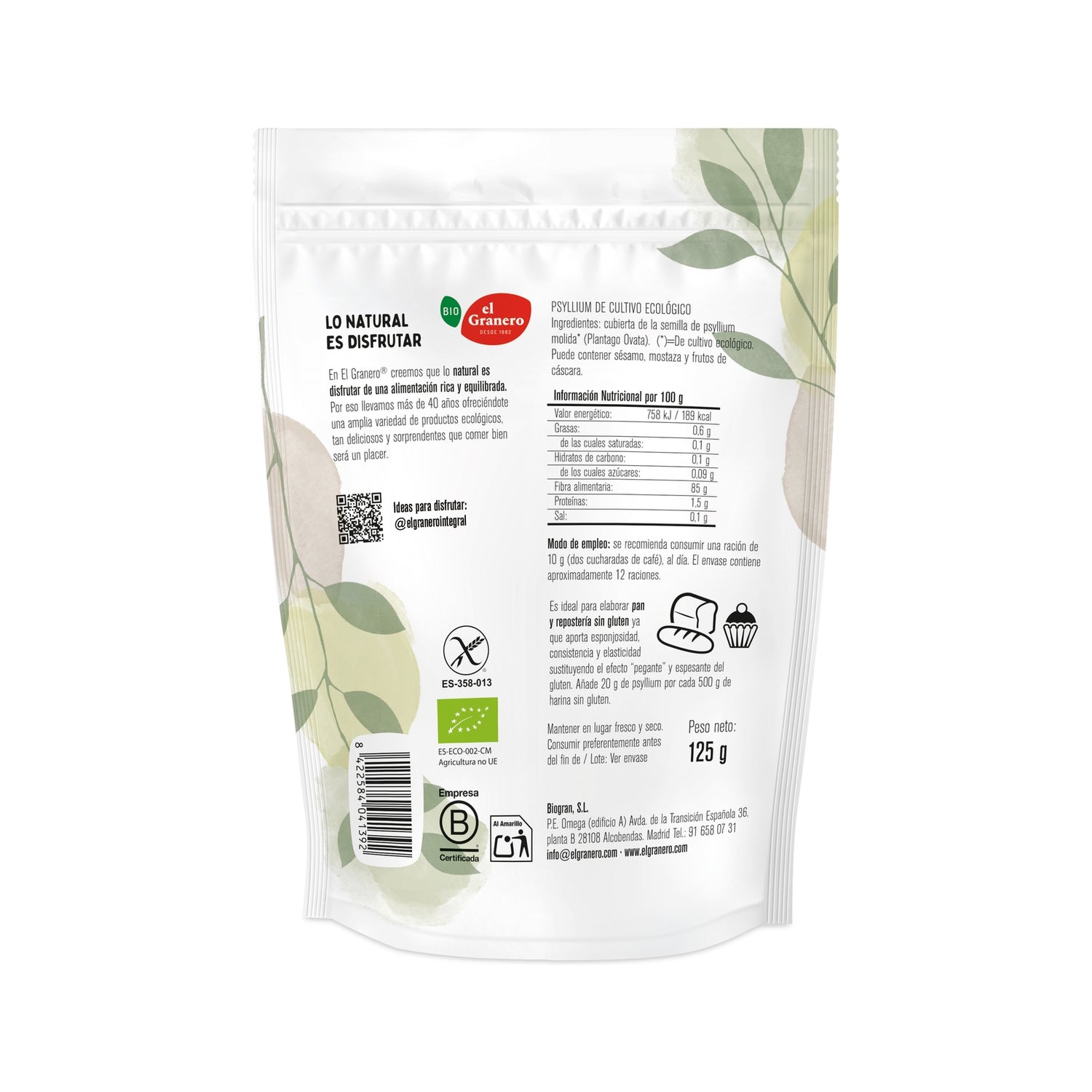 Préparation alimentaire à base de graines de psyllium moulues et sans gluten. Il s'agit d'une alternative aux farines conventionnelles, utile pour la préparation de pains, de biscuits ou de gâteaux pour toute la famille. Elle est riche en nutriments et en fibres solubles. Convient aux adultes et aux enfants.