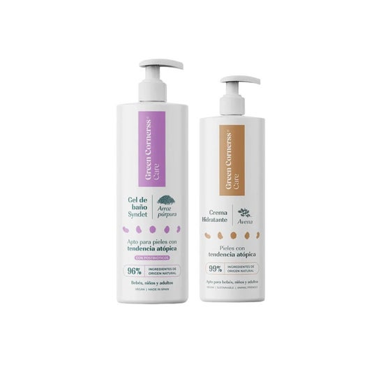 Green Cornerss Pack Gel Douche + Crème Hydratante est une solution dermocosmétique intégrale destinée à l'hygiène et au soin quotidien des peaux les plus délicates. Ce pack, créé par la marque Green Cornerss, se distingue par ses formules qui prennent soin de la peau tout en respectant l'environnement.