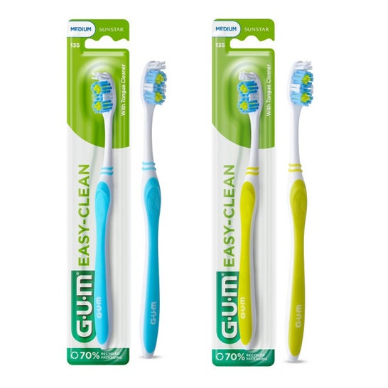 GUM Easy Clean Brosse à Dents 1ud est une brosse à dents manuelle avec une tête compacte et des filaments de hauteurs différentes, conçue pour atteindre plus facilement les zones arrière de la bouche.