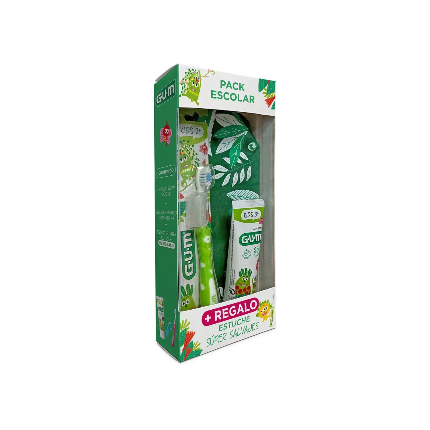 Gum Pack Scolaire Kids Avec Trousse +3 Ans est un kit complet pour l’hygiène bucco-dentaire des enfants. Il contient :