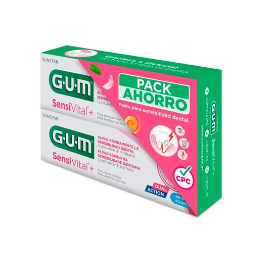 Gum Sensivital Pâte Dentifrice 2x75 ml est un pack de deux pâtes dentifrices de 75 ml, indiqué pour les adultes et les enfants de plus de 7 ans. Il aide à réduire la sensibilité dentaire causée par des aliments froids, chauds, sucrés ou acides. Il offre une texture douce et un goût de menthe.