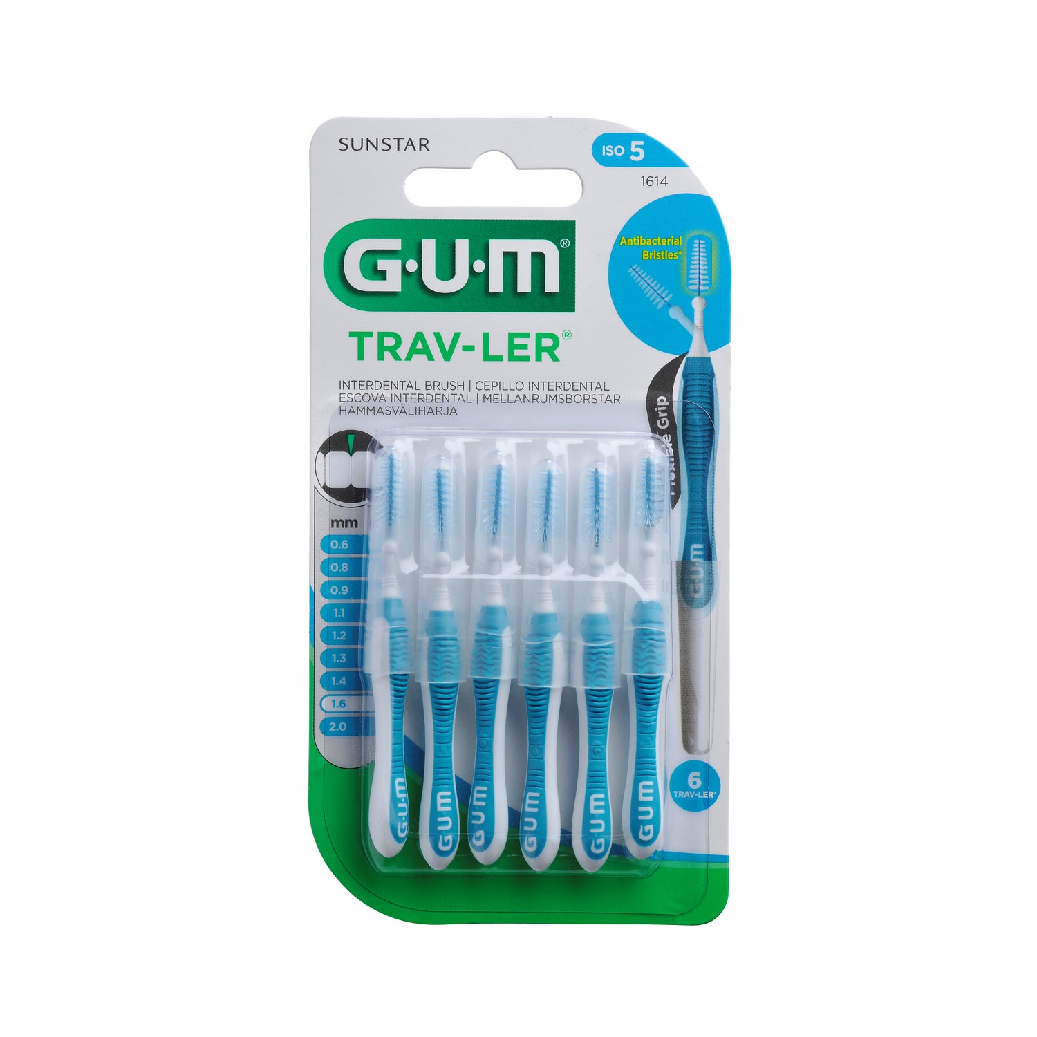 Gum Trav-Ler Brossette Interdentaire 1.6mm 6 Unités facilitent l'hygiène interdentaire grâce à ses brins imprégnés de chlorhxidine.