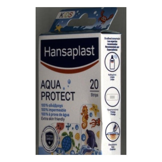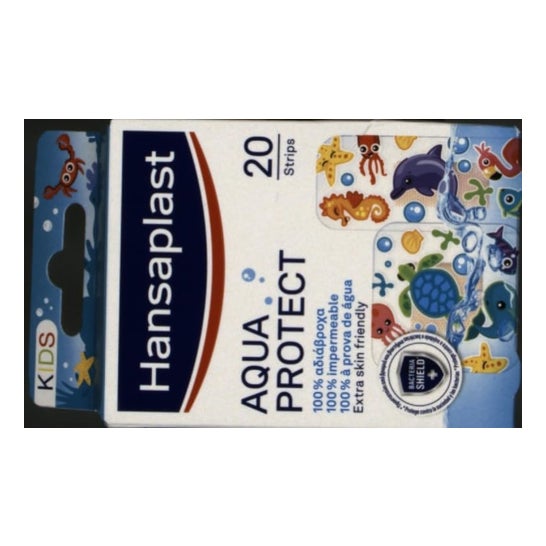 Hansaplast Aqua Protect Kids 20 Pansements sont des pansements pour enfants conçus pour offrir une protection imperméable, idéale pour couvrir les petites plaies pendant le bain ou la baignade.