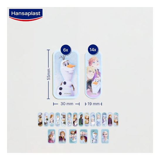 Hansaplast Disney La Reine des Neiges Pansement Adhésif 20 Unités sont des pansements inspirés des personnages préférés du dessin animé "La Reine des Neiges". Facile à enlever et formant un coussinet, ils protègent les petites blessures tout en amusant les enfants.