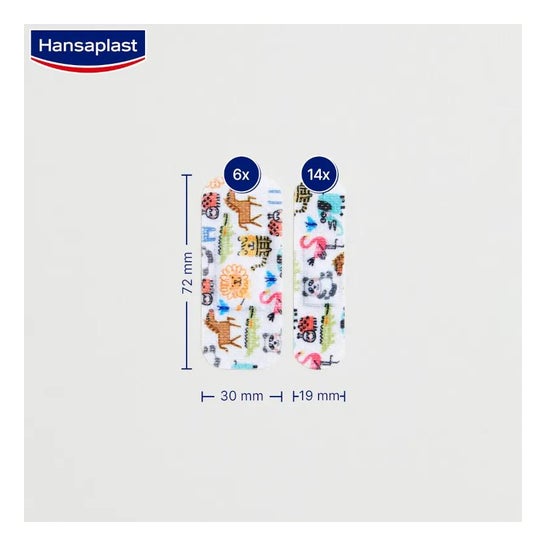 Hansaplast Sensitive Kids Animaux Pansements 20uds sont des pansements avec un motif d'animaux, adaptés pour couvrir et protéger les petites blessures.